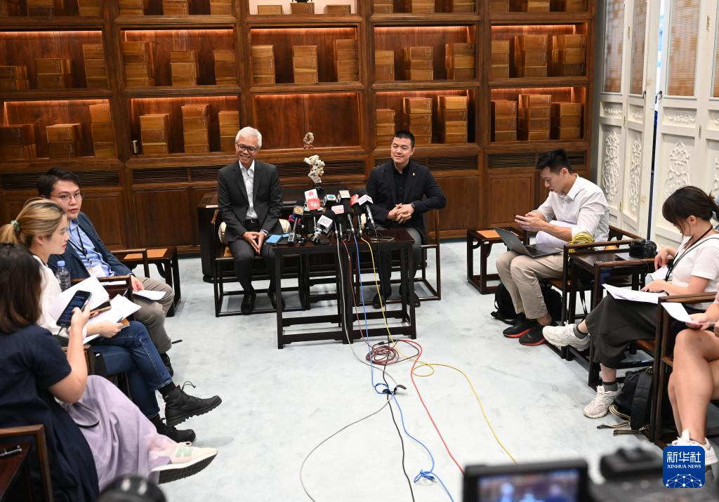 8月22日,故宮博物院常務副院長婁瑋(右)、香港故宮文化博物館館長吳志華在北京故宮博物院接受采訪。新華社記者 金良快 攝