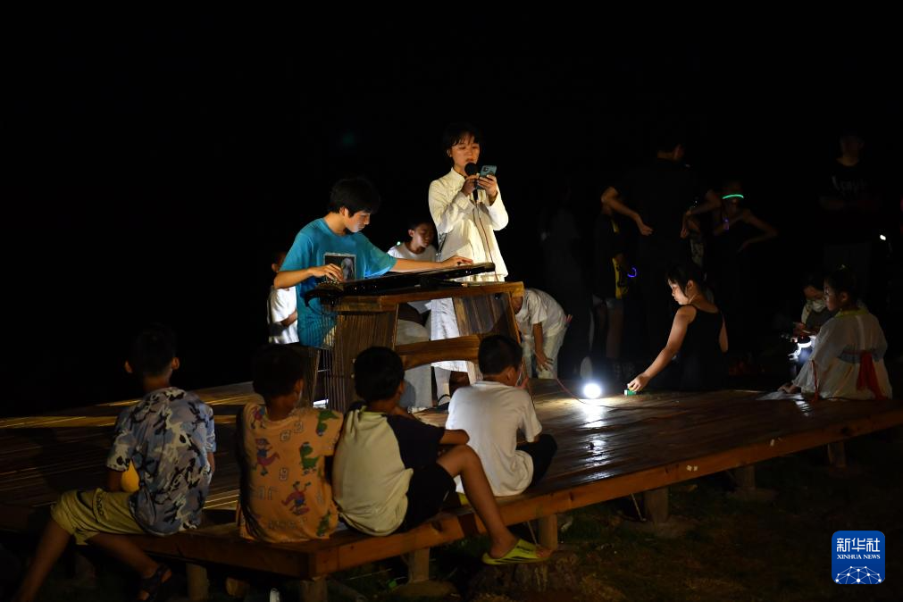 8月20日,在2023大元社鄉村青少年藝術節中,老師和孩子們用古琴彈奏、演唱歌謠《南風歌》。