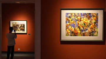 8月28日,參觀者在中國園林博物館參觀“極境——走進青藏高原”展。
