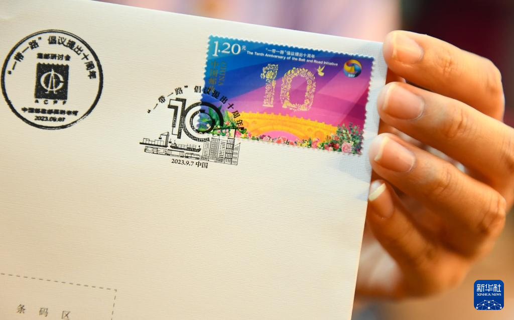 9月7日,《“一帶一路”倡議提出十周年》紀念郵票在位于北京市東城區的中國郵政郵票博物館揭幕。