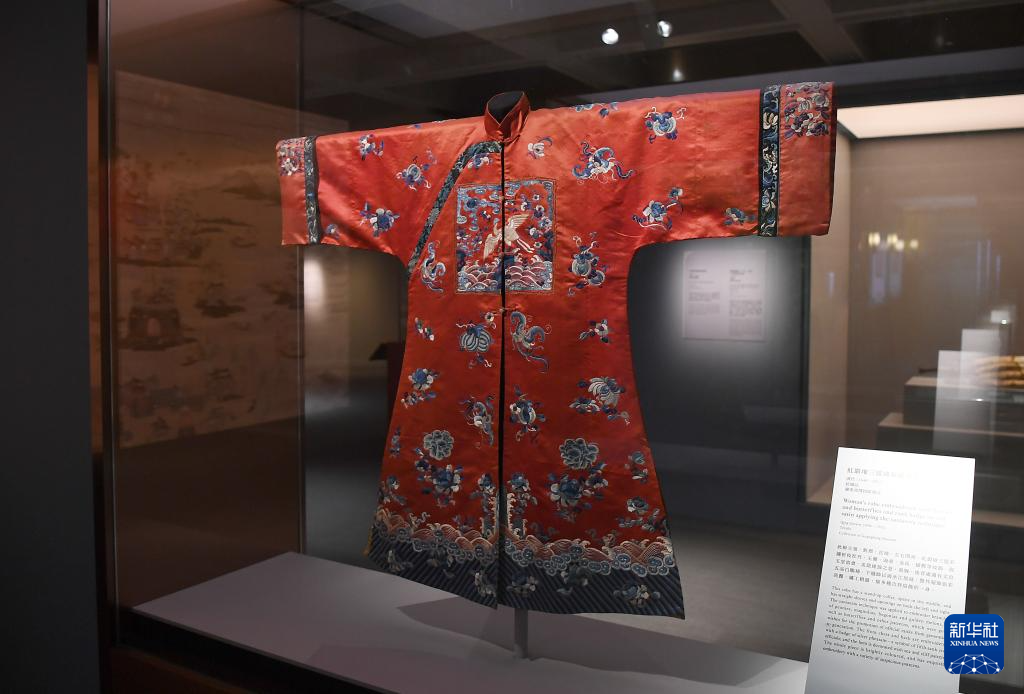 這是9月7日在展覽上拍攝的一款清代服飾。新華社記者 陳鐸 攝