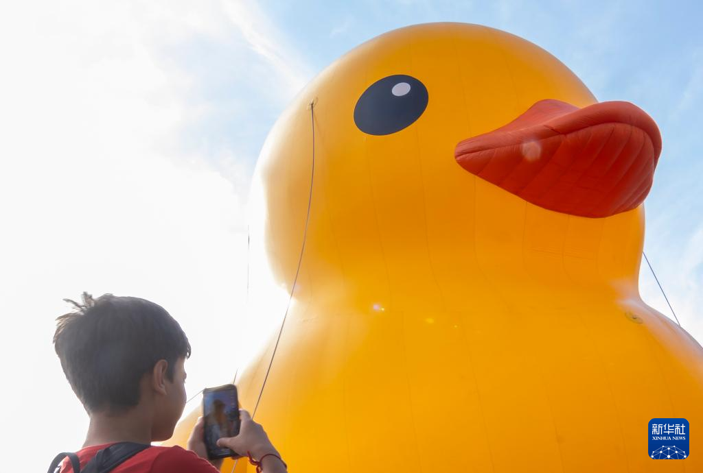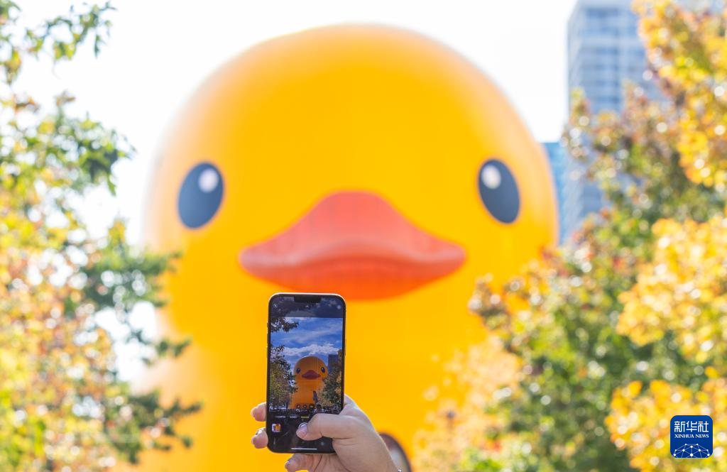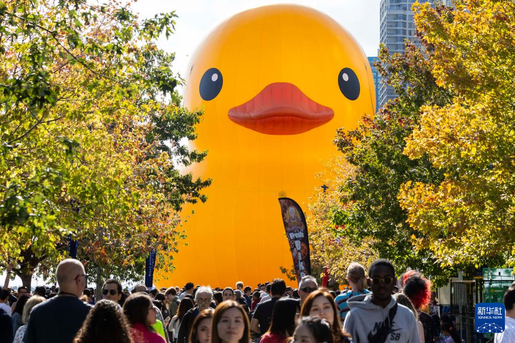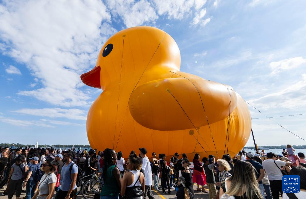 當日,一只6層高、重約13.6噸(30000磅)的橡皮“大黃鴨”亮相多倫多,吸引了眾多游人。這是“大黃鴨”繼2017年后再次來到多倫多,從9月16日至17日向公眾開放。
