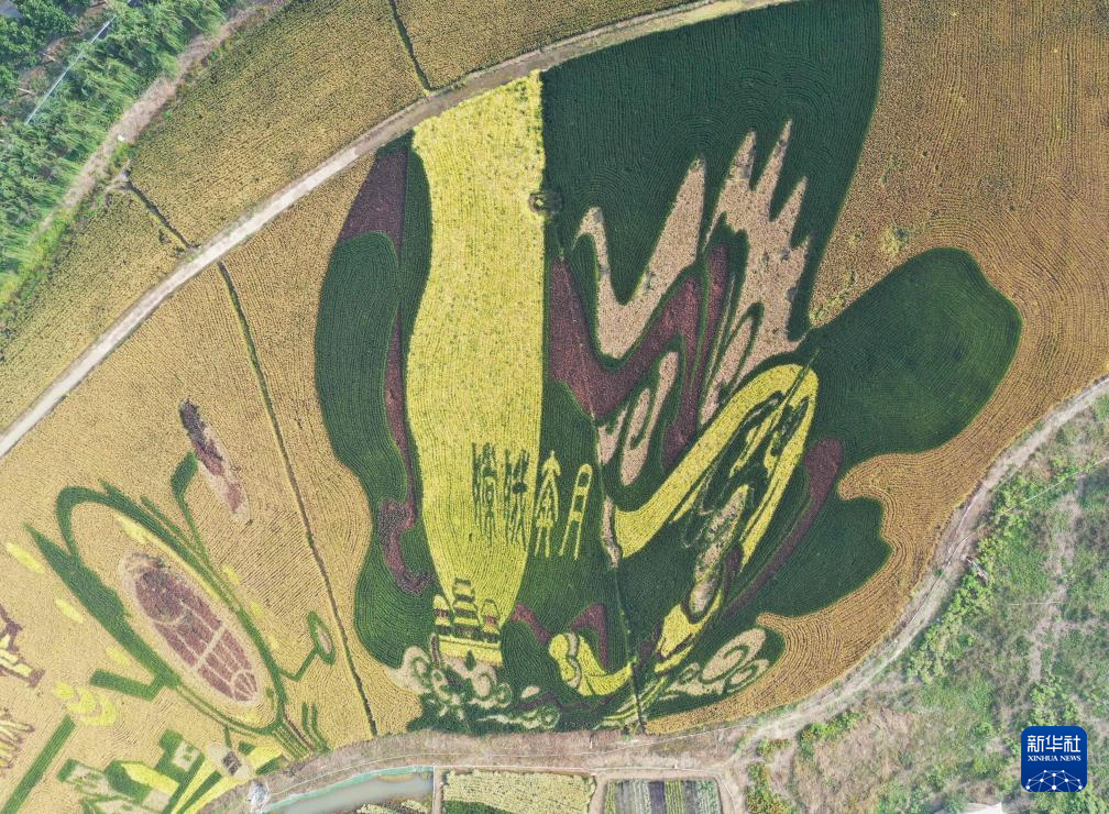 近日,河北省保定市徐水區神農現代農業示范園打造的五彩稻田畫成為一道獨特風景線。從空中俯瞰,一幅幅精美的稻田畫在廣闊的大地上鋪展開來,勾勒出豐收壯美景象。
