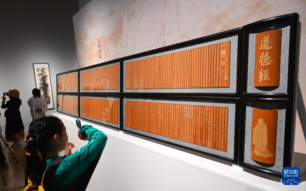 10月14日,觀眾參觀徐秉方父女歷時三年刻成的留青竹刻竹簡作品《道德經》。