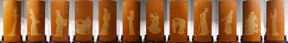 10月14日拍攝的劉旦宅畫、徐秉方刻的留青竹刻臺屏作品“金陵十二釵”(拼版照片)。
