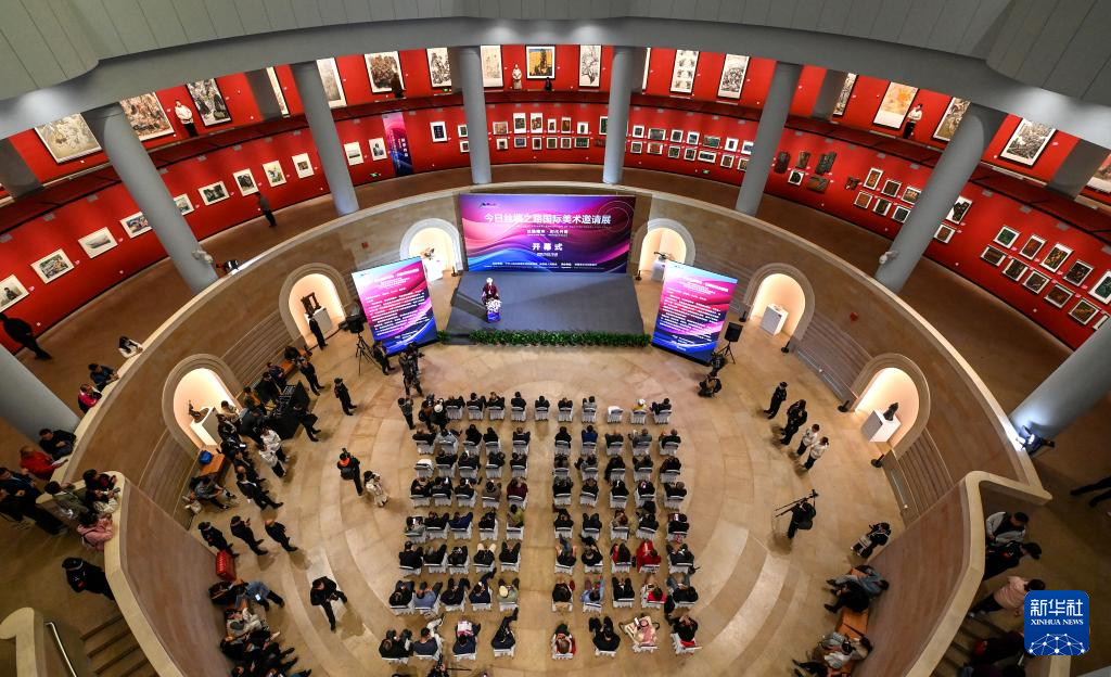 當日,“今日絲綢之路國際美術邀請展”在位于西安的陜西省美術博物館開幕。作為第九屆絲綢之路國際藝術節的六大板塊之一,展覽以“絲路精神·時代丹青”為主題,展出作品600余件,涵蓋中國畫、油畫、版畫、雕塑、水彩、刻字等多個藝術門類。