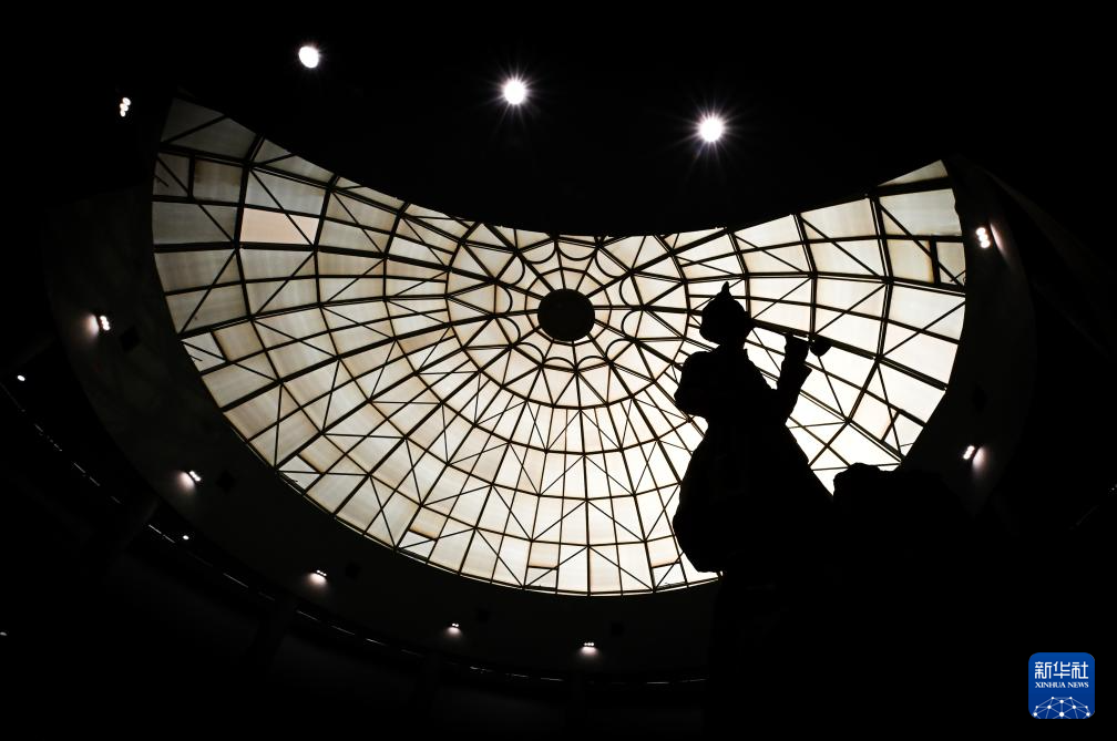 這是10月24日拍攝的“今日絲綢之路國際美術邀請展”展出的雕塑作品《披星戴月》。