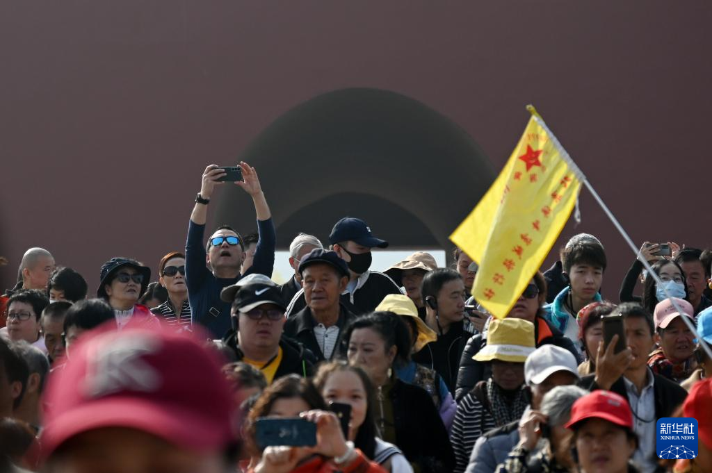 10月24日上午,觀眾在午門廣場排隊等候進入故宮。