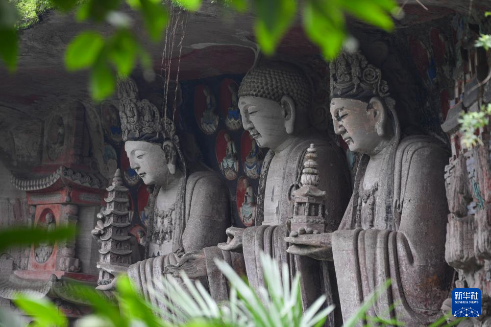 11月1日在大足石刻景區拍攝的華嚴三圣像。