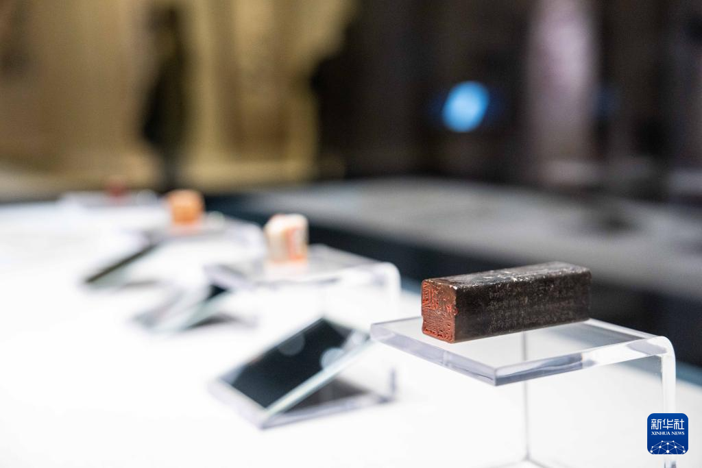 11月5日,在湘潭市博物館,觀眾在觀看齊白石印章作品。