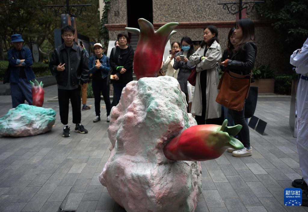11月8日,觀眾在上海思南公館公共空間參觀藝術家的雕塑作品。