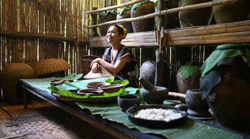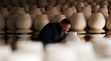 西漢彩繪人物車馬鏡局部彩繪圖案“宴飲”(8月25日攝)。