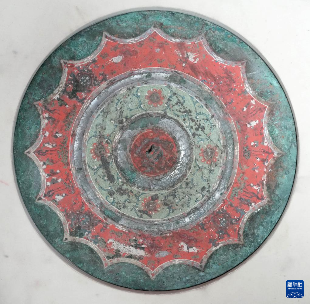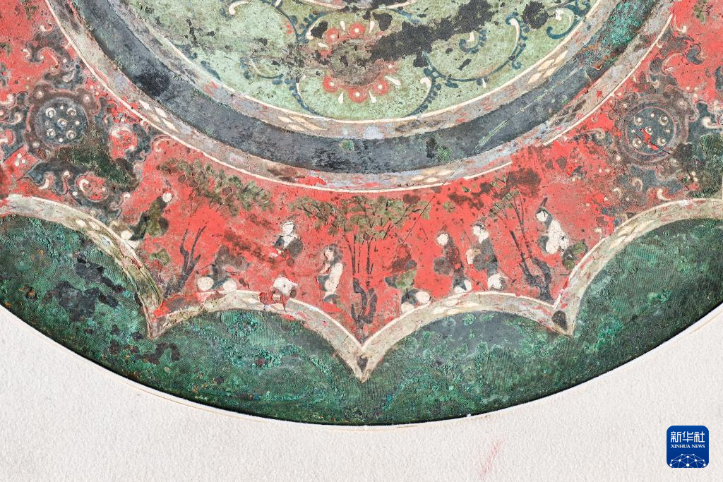 銅鏡是古代妝容工具,具有重要的藝術和科學價值,彩繪銅鏡是銅鏡中的珍品。1963年在陜西西安紅廟坡村出土的西漢彩繪人物車馬鏡,距今已有2000多年歷史,色澤艷麗,精美絕倫,被視為中國古代彩繪銅鏡代表作之一,入選國家文物局發布的《第三批禁止出境展覽文物目錄》。