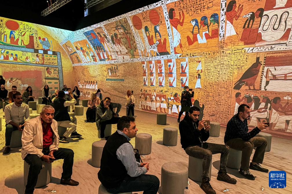 11月20日,人們在埃及吉薩的大埃及博物館參觀圖坦卡蒙沉浸式展覽。