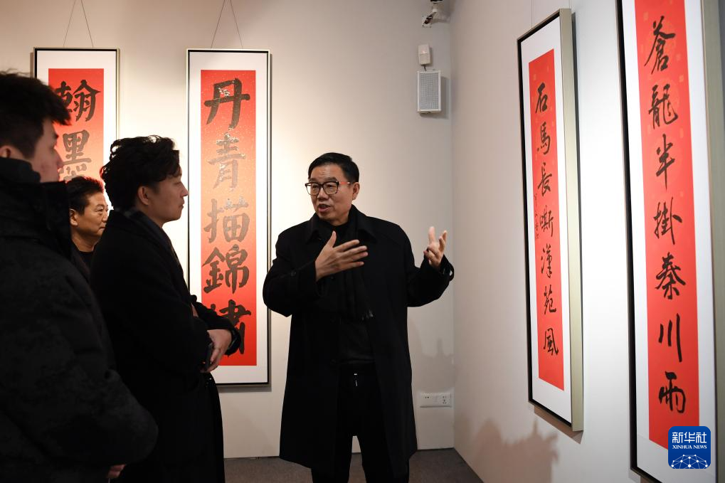 當日,“龍行六合、星語楹春”跨界書家春聯展在北京舉行,展出書法家、演員、歌手等各界藝術家創作的春聯、福字等作品。