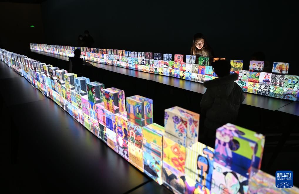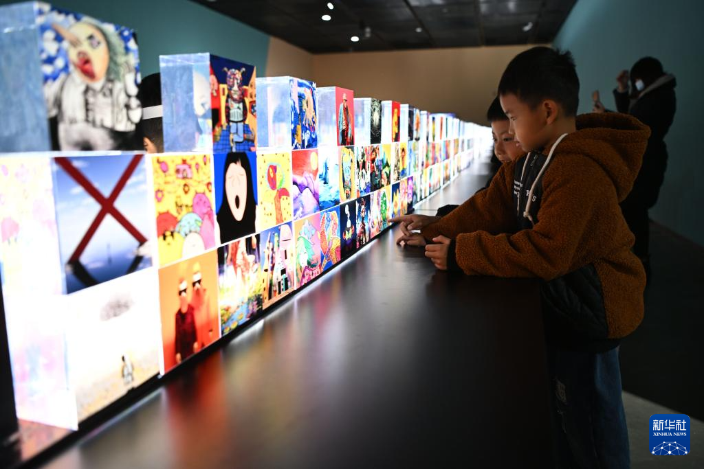 11月25日,參觀者在銀川當代美術館觀看“一顆種子的旅行”兒童藝術展。