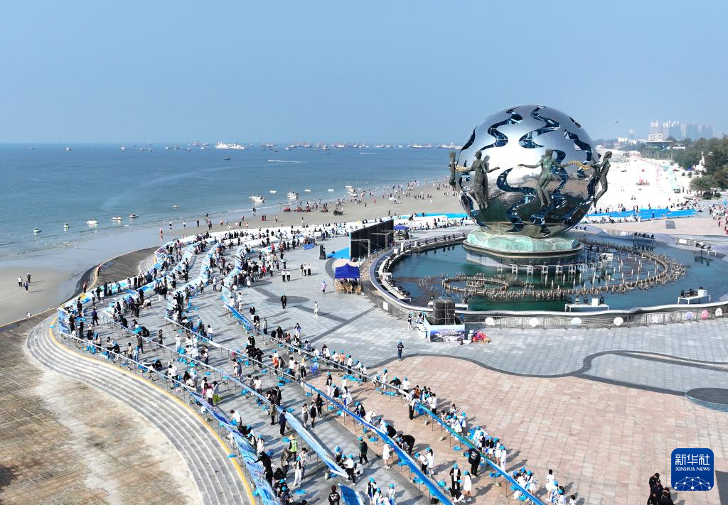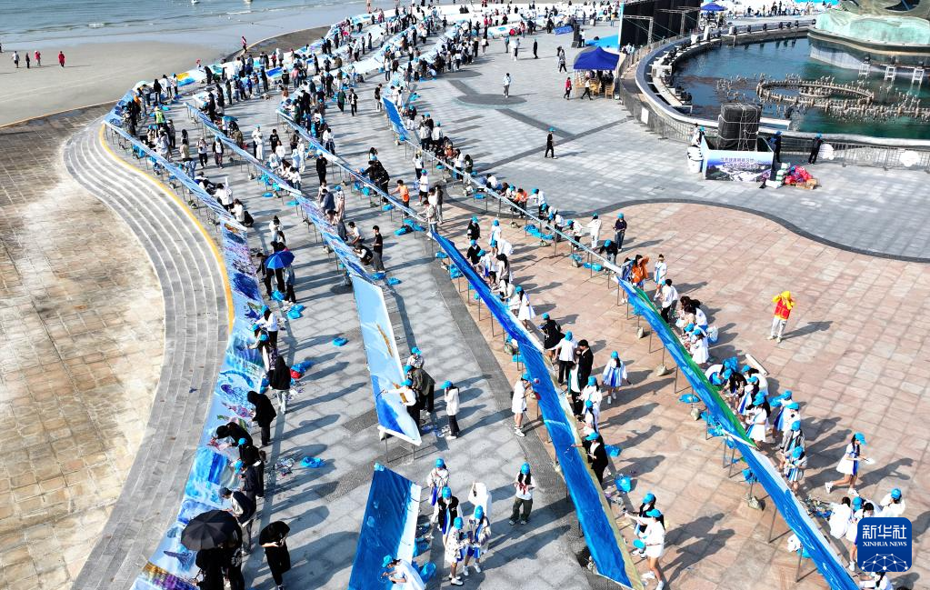 這是11月28日拍攝的“十里銀灘千人共繪”現場(無人機照片)。