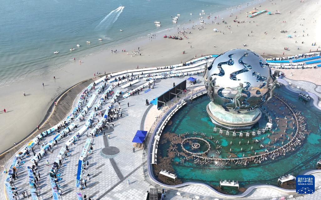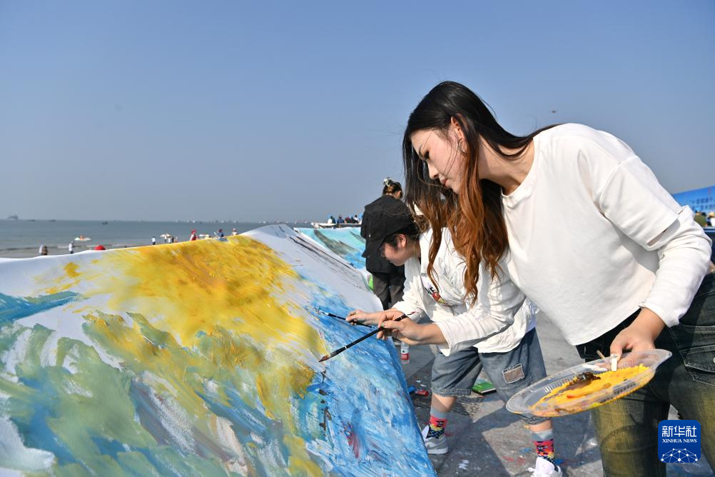 當日,“十里銀灘千人共繪”現場美術創作活動在廣西北海銀灘國家旅游度假區舉行。