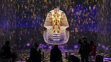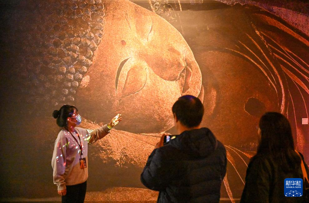 11月28日,觀眾在天津數字藝術博物館內參觀“發現敦煌——敦煌藝術情景式特展”。