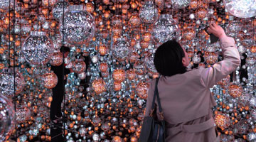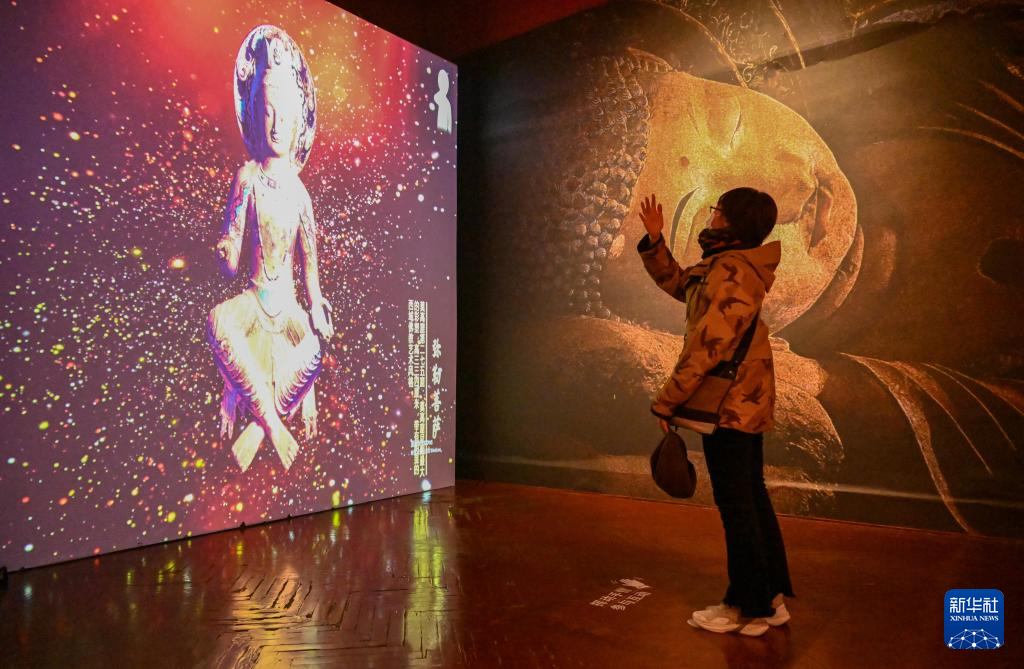 11月28日,在天津數字藝術博物館,觀眾通過數字技術與敦煌文物互動。