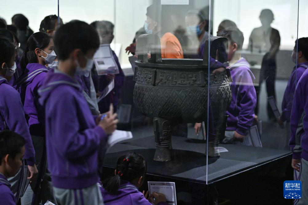 11月29日,觀眾在清華大學藝術博物館觀看西周時期的作寶鼎(國家一級文物)。