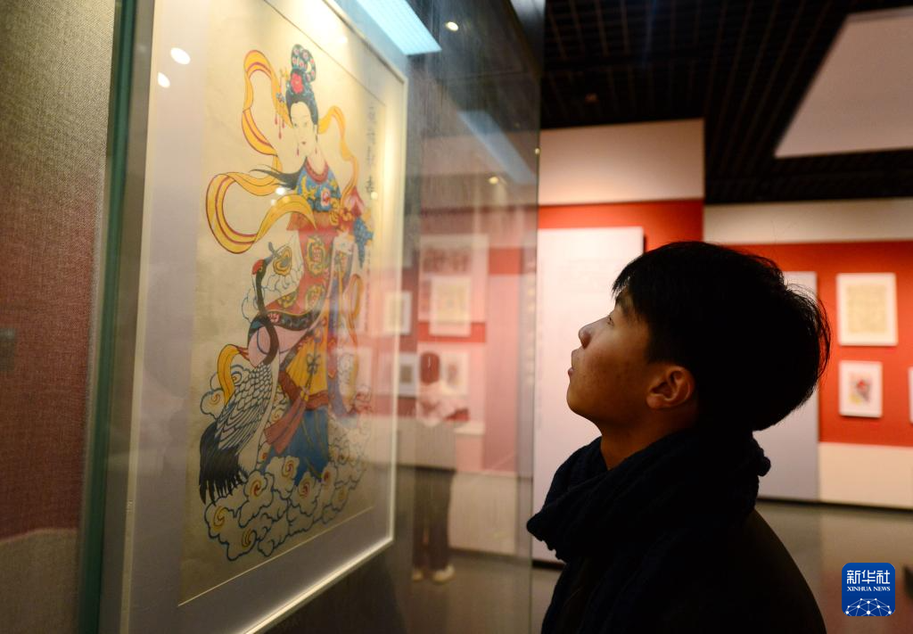 12月27日,武強縣職教中心的學生在武強年畫博物館內參觀。
