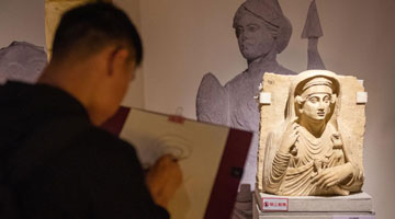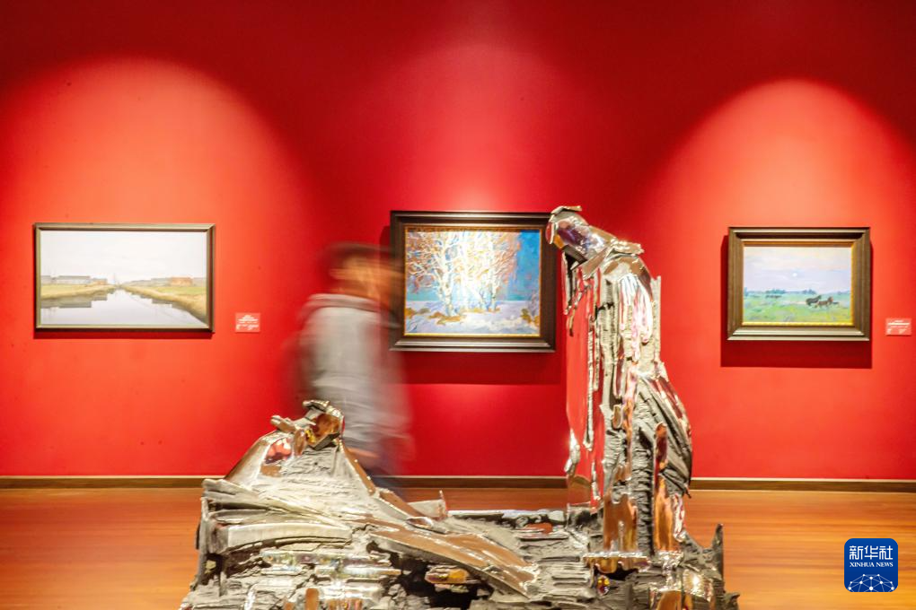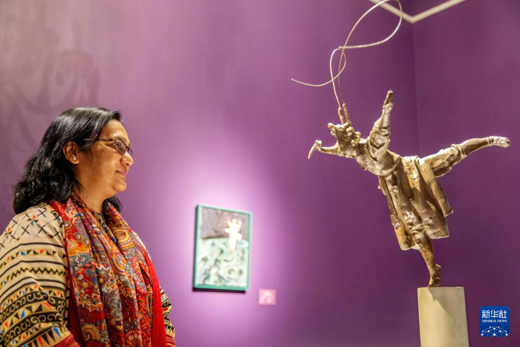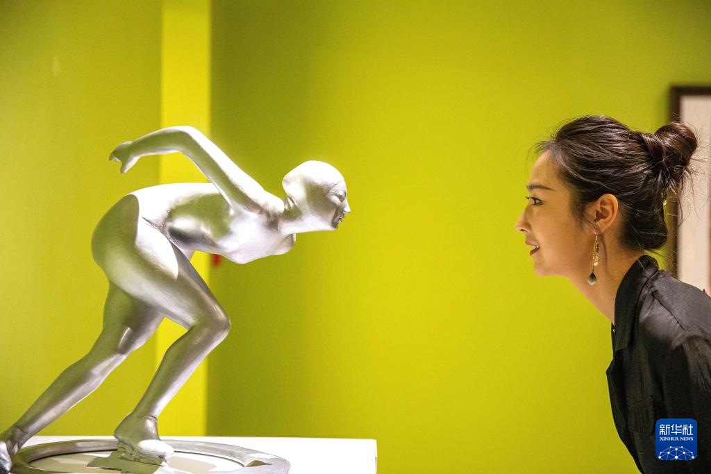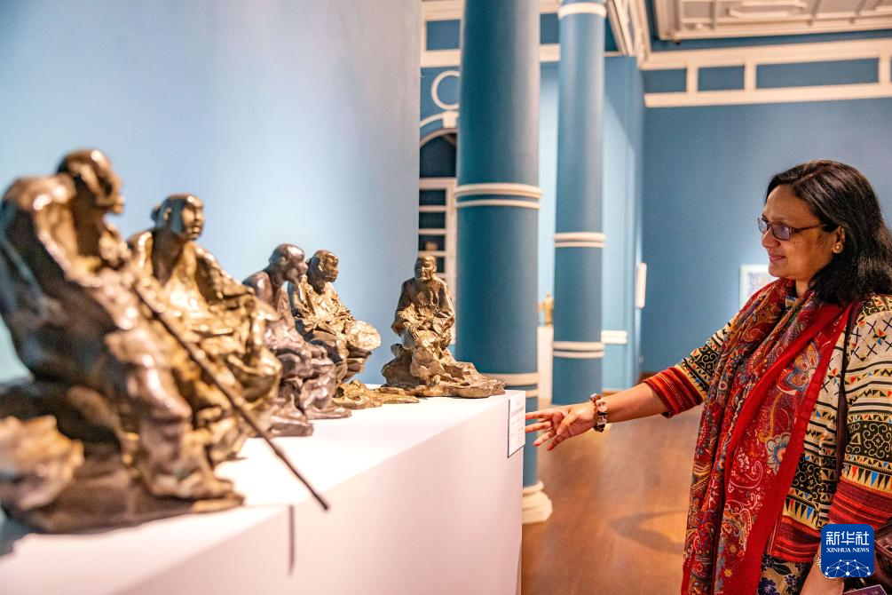 12月27日,一名參觀者在泰國曼谷的泰國國家美術館觀看雕塑作品。