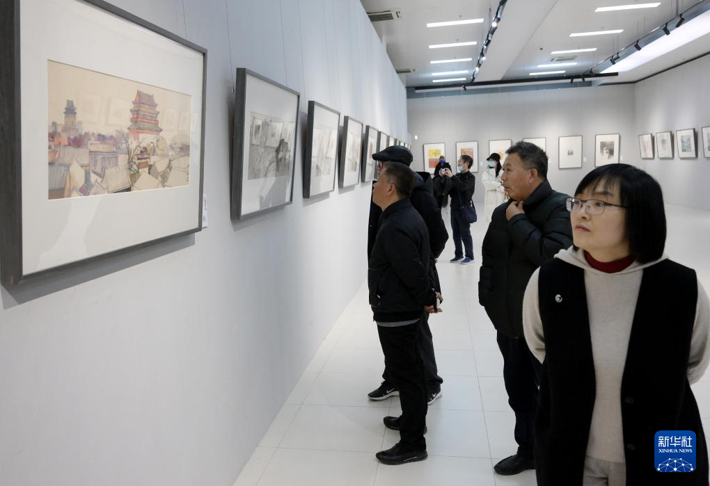 12月28日,觀眾在北京中國國家畫院展廳參觀畫展。