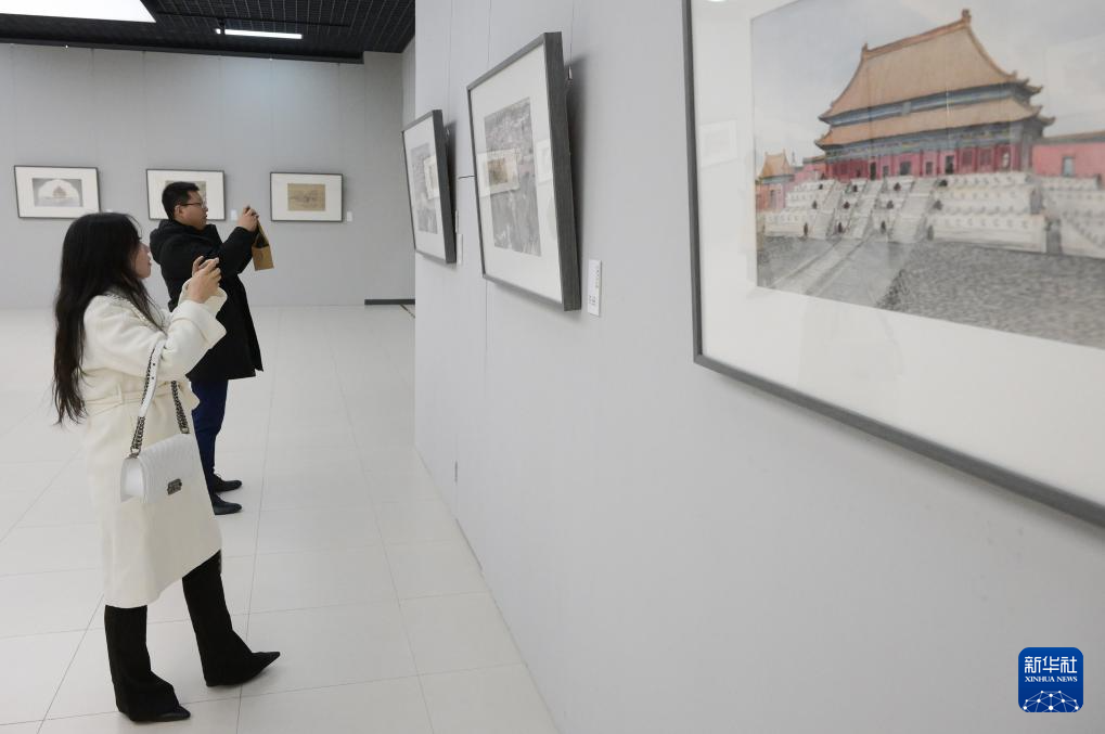 當日,“中國畫 畫文物——2023北京中軸線主題寫生作品展”在北京中國國家畫院開展。