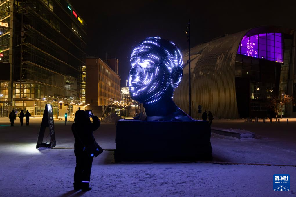 這是1月3日在芬蘭赫爾辛基拍攝的一座燈光裝置。