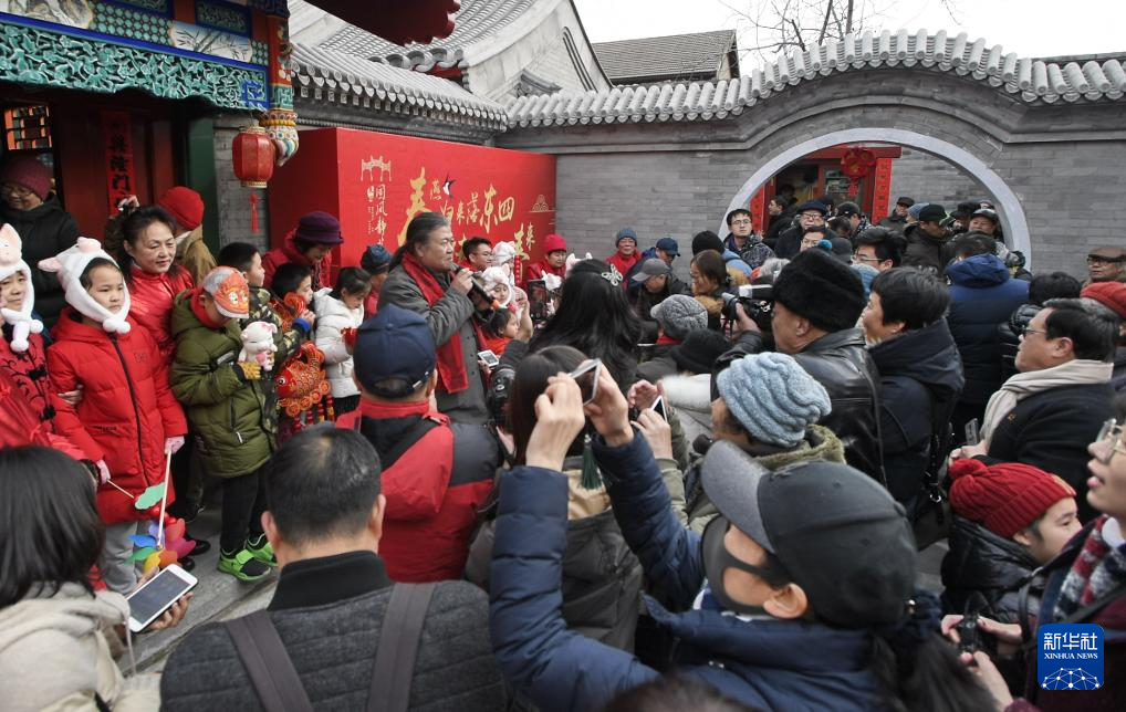 楊信在給北京居民講述老北京立春的民俗(2019年2月3日攝)。