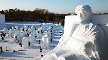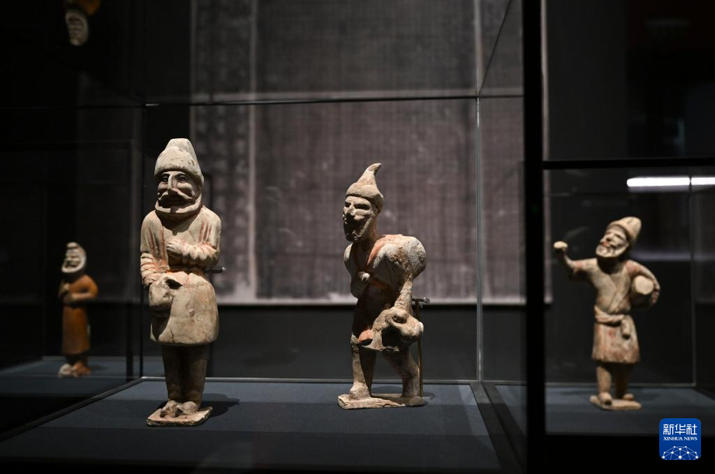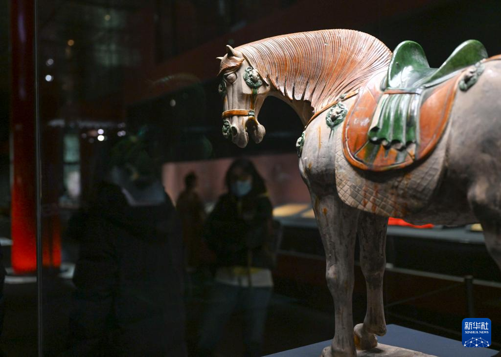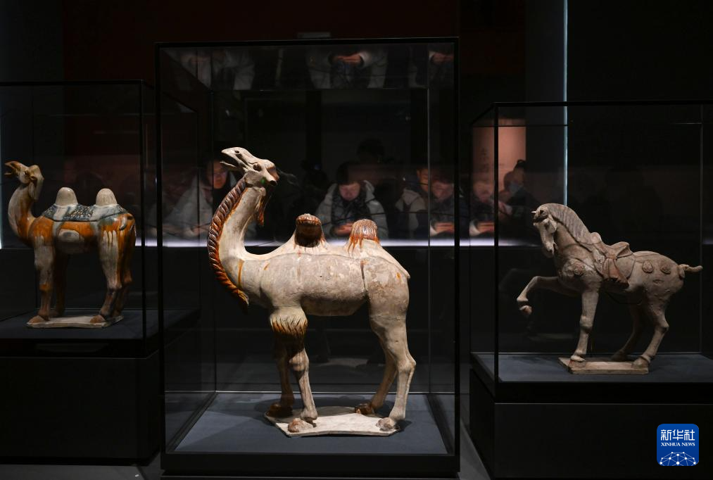 這是展出的陶彩繪馬與三彩駱駝(1月10日攝)。
