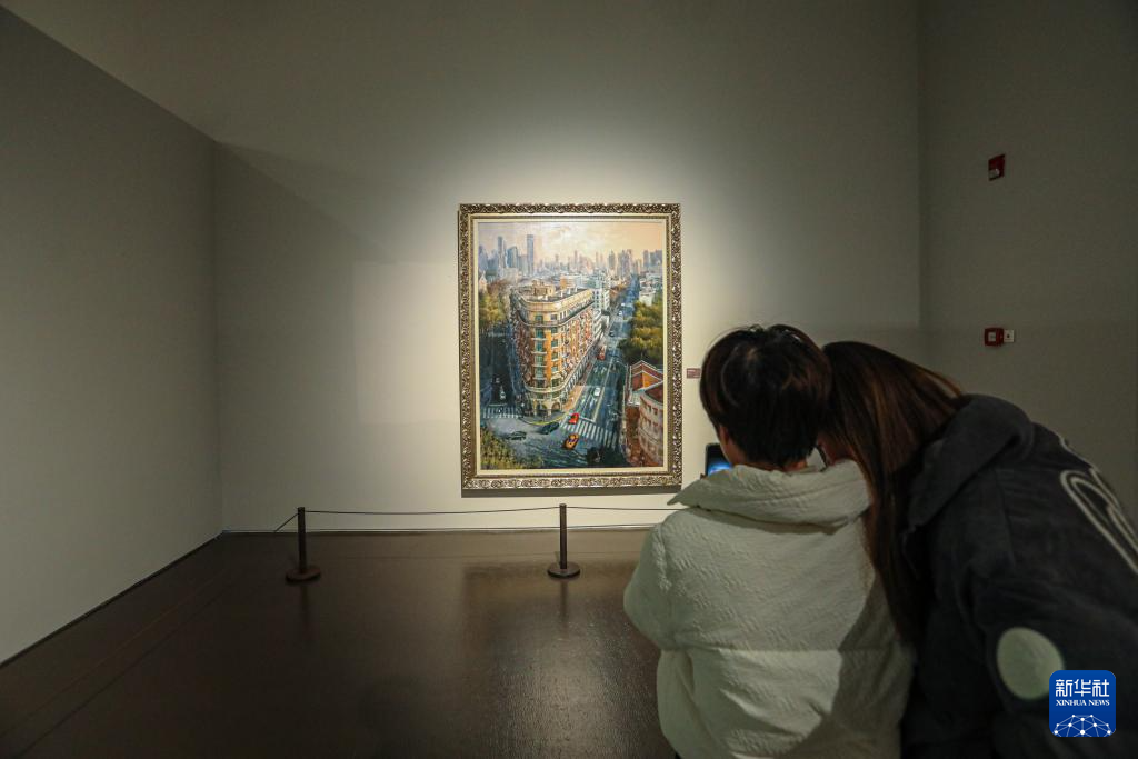 1月12日,觀眾在參觀畫作《梧桐深處的武康大樓》。