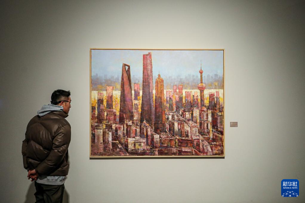 1月12日,觀眾在觀賞畫作《上海長高了》。