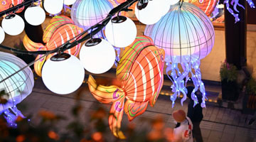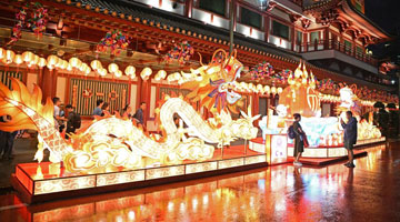1月21日,游客在豫園商城黃金廣場賞燈。