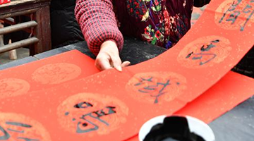 1月31日,參觀者在觀看展覽上展出的名為“杉龍韻”的藝術作品。
