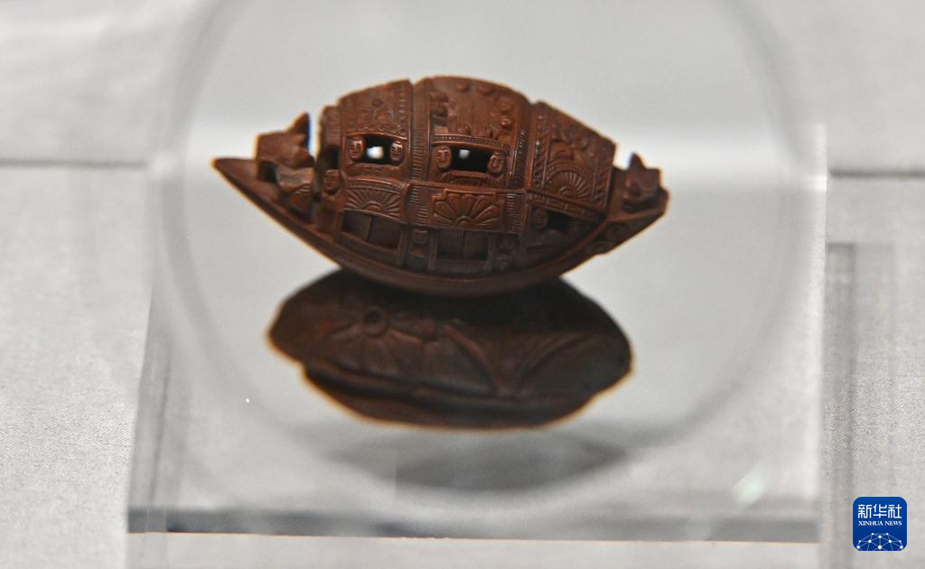這是清代《東坡游赤壁》橄欖核雕(1月31日攝)。
