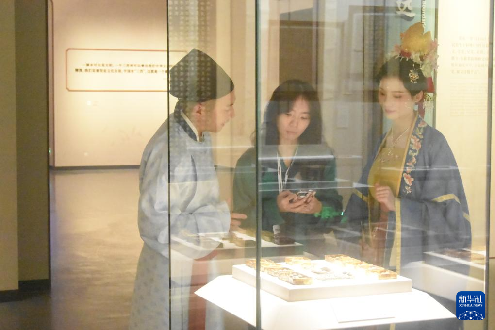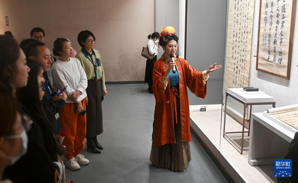 1月31日,身著古裝的講解員在向觀眾介紹展品。