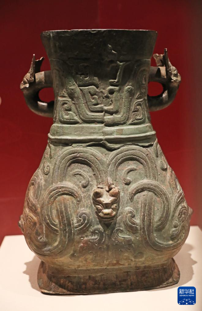 2月2日在遼寧省博物館拍攝的龍紋方壺。
