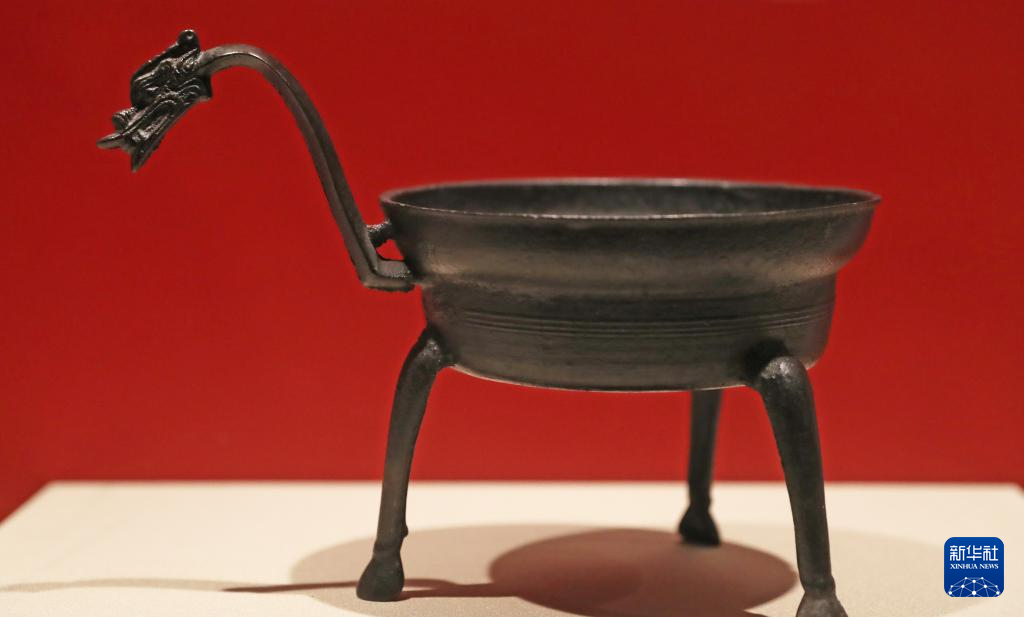 2月2日在遼寧省博物館拍攝的龍首銅鐎斗。