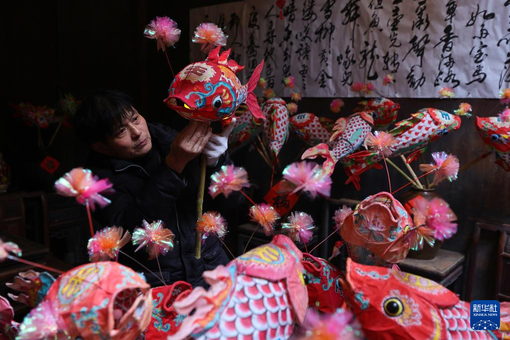 春節前夕,安徽省黃山市歙縣一些古村的村民加緊制作魚燈,迎接農歷新春的到來。