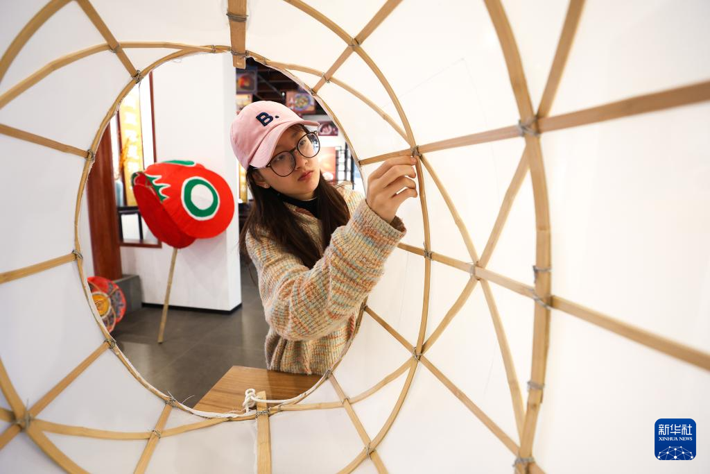 2月6日,黃山市歙縣徽州古城魚燈館工作人員在制作魚燈。