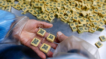 2月4日,在童壽記木版年畫工作室,非遺傳承人童敏在印制年畫。