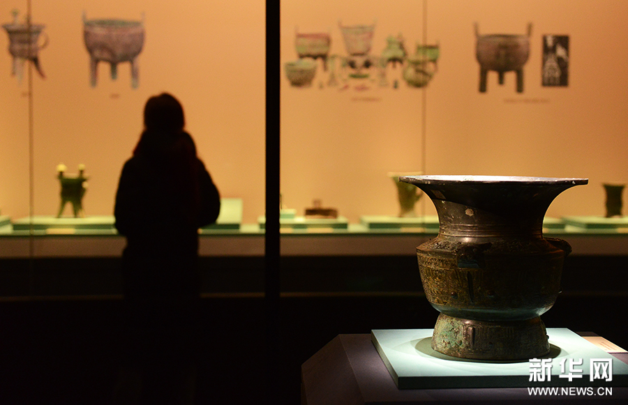 2月26日,河南省安陽市殷墟博物館新館陳列的展品。