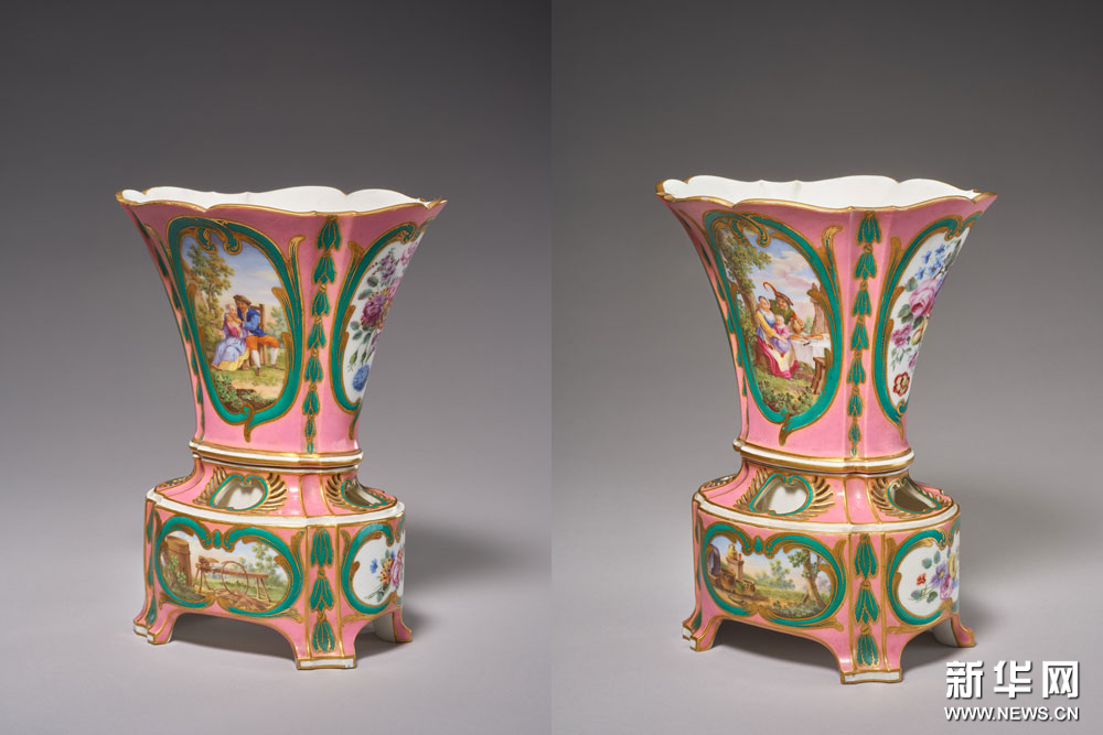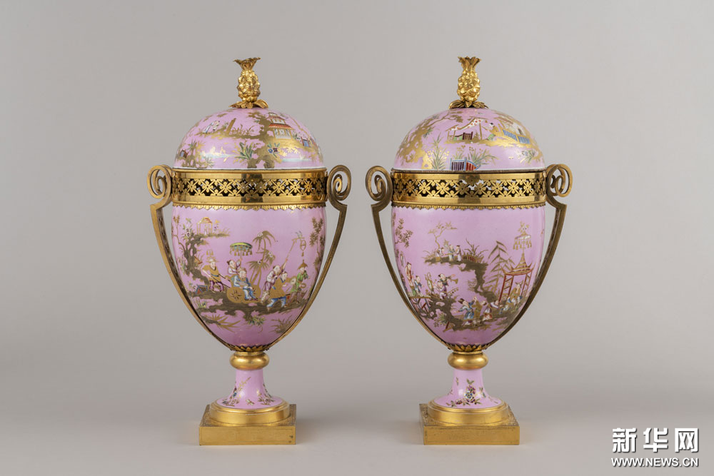 淡紫地彩繪描金風景人物圖蛋形瓶一對 凡爾賽宮與特里亞農宮國立博物館藏