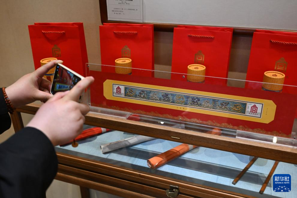 當日,由故宮博物院與中國郵政集團有限公司主辦的“‘宮’郵萬里 四季安康——甲辰系列主題郵品”發布會在北京故宮博物院舉行。本次發布會,故宮郵局推出《四季故宮》藏書票、《甲辰太和》《九龍壁》個性化郵票、《龍抬頭》《龍騰紫禁》郵冊等多款甲辰系列主題郵品,在郵票方寸世界中呈現故宮四時美景與院藏珍寶。