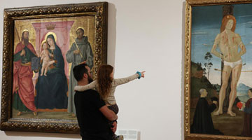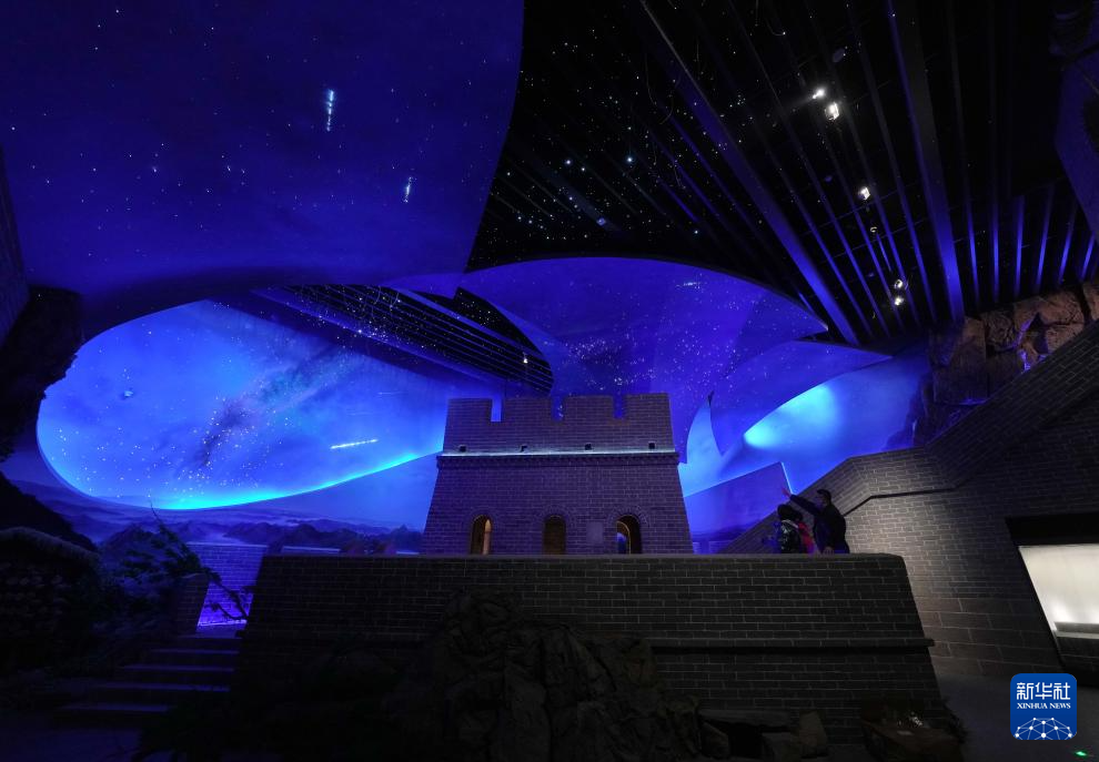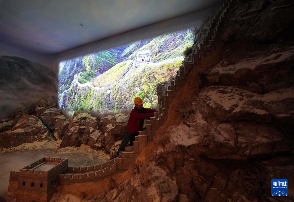 4月11日,工人在山海關中國長城博物館展廳察看燈光效果。