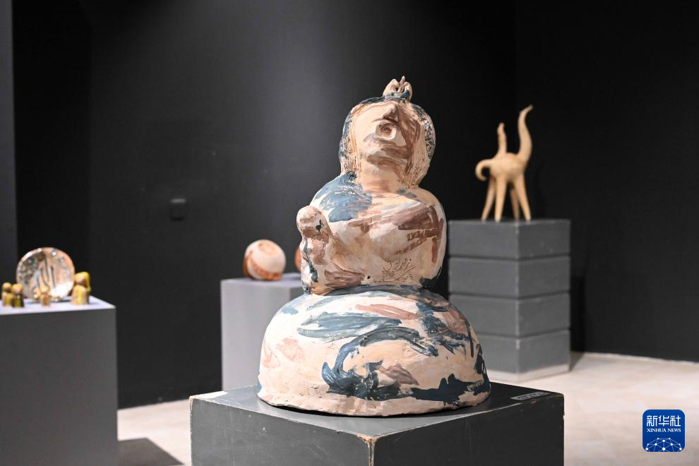 這是4月15日在科威特首都科威特城現代藝術博物館拍攝的陶瓷展品。