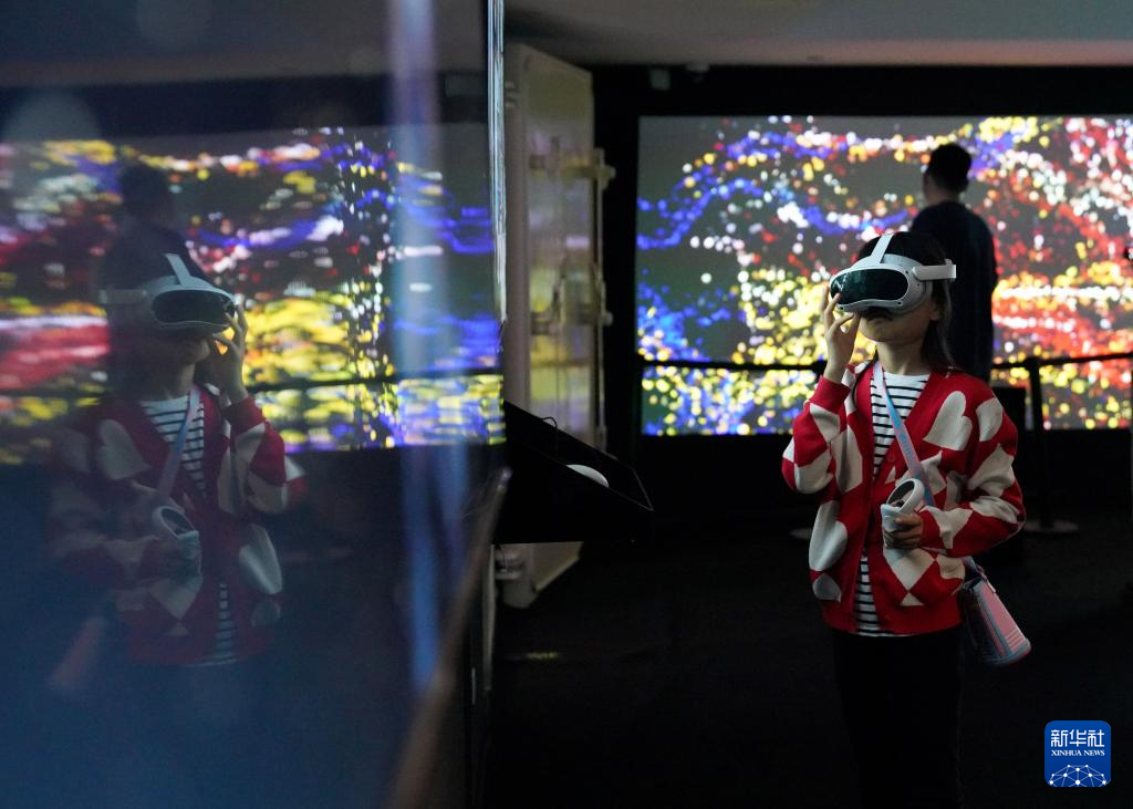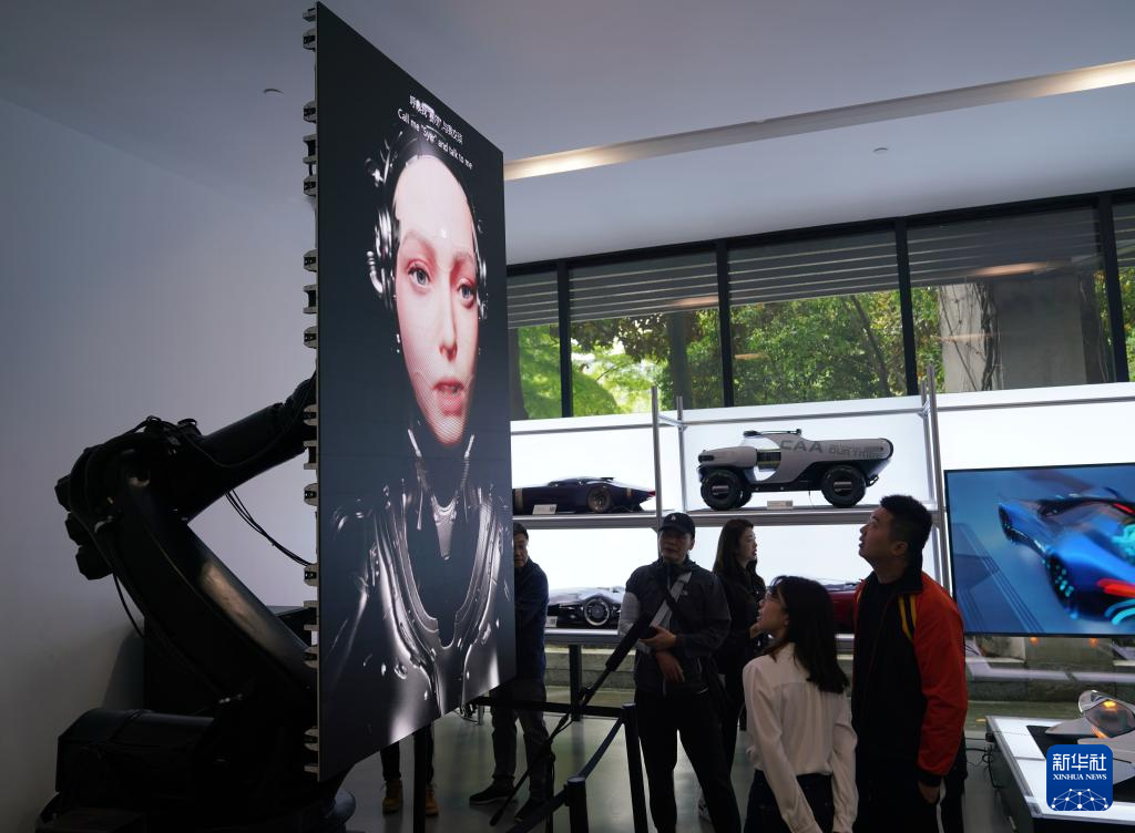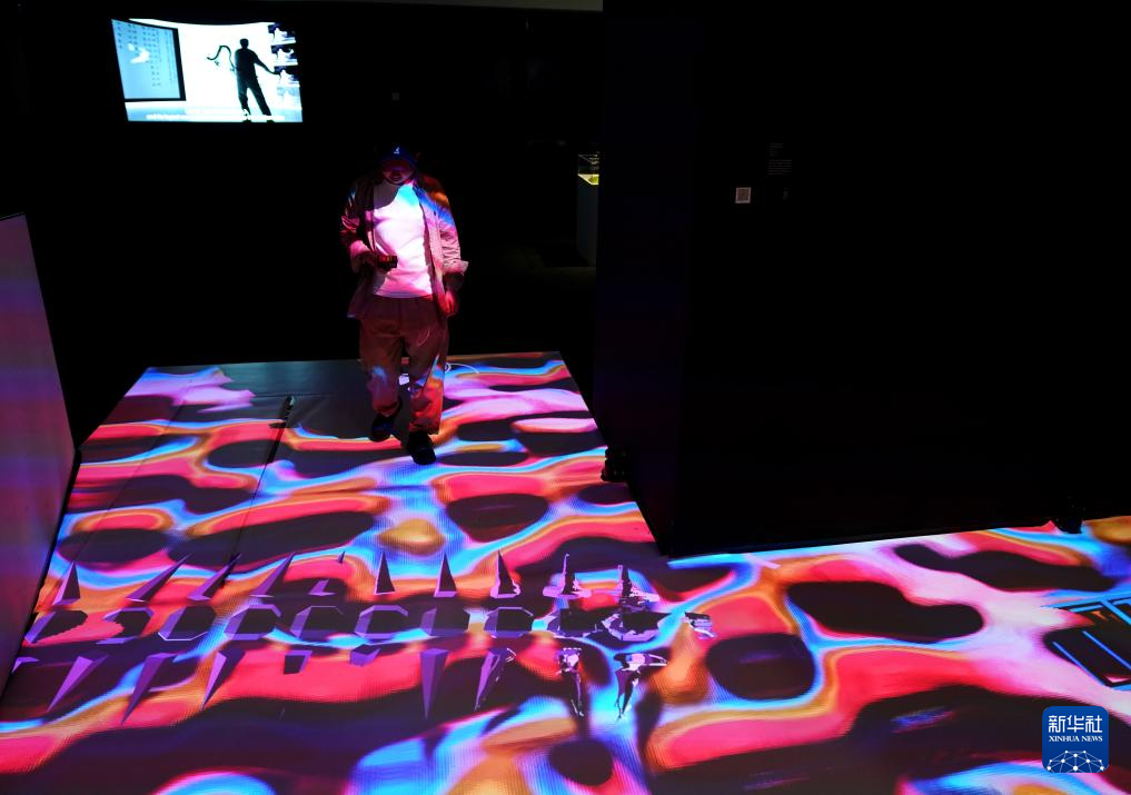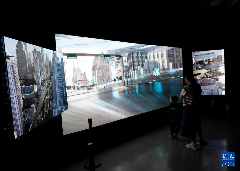 4月21日,觀眾在首屆中國數字藝術大展上觀看混合現實作品《未來出行倉》。