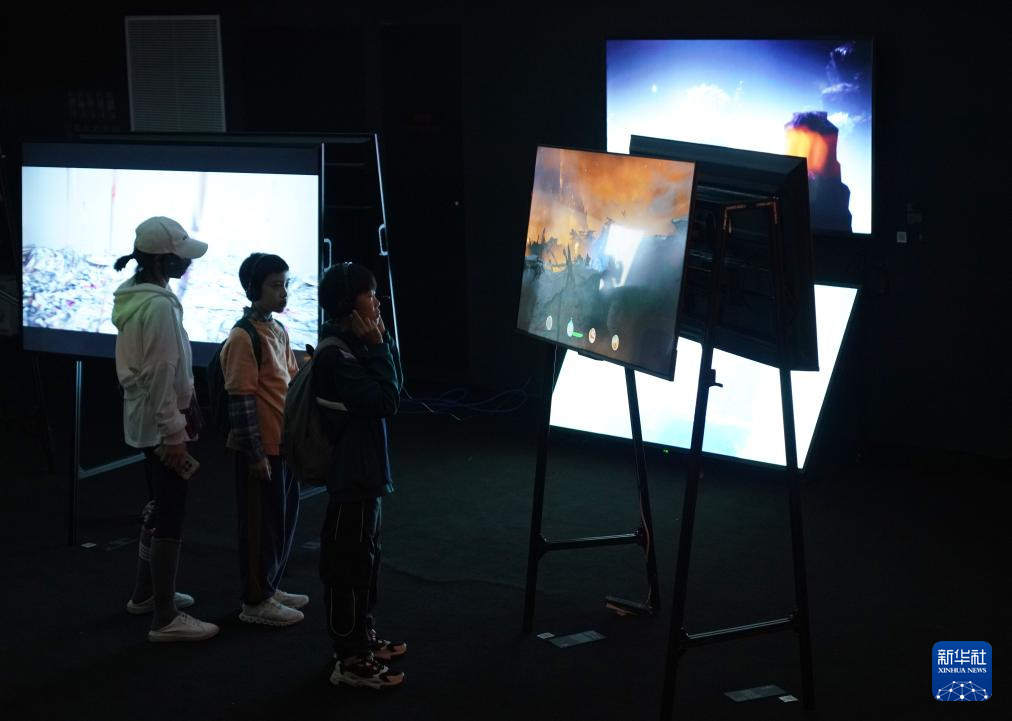 4月21日,觀眾在首屆中國數字藝術大展上觀看參展作品。